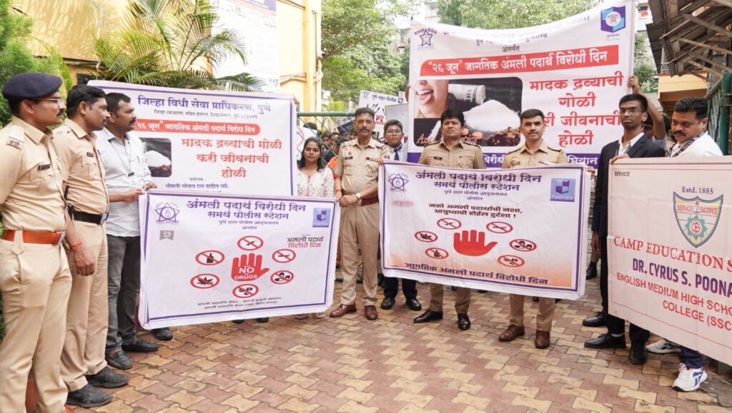पुणे : आंतरराष्ट्रीय अंमली पदार्थविरोधी दिना’च्या निमित्ताने समर्थ पोलिस स्टेशन, पुणे शहर गुन्हे शाखेचे अंमली पदार्थविरोधी पथक आणि जिल्हा विधी सेवा प्राधिकरण यांच्या संयुक्त विद्यमाने आज सकाळी जनजागृती रॅलीचे आयोजन करण्यात आले.