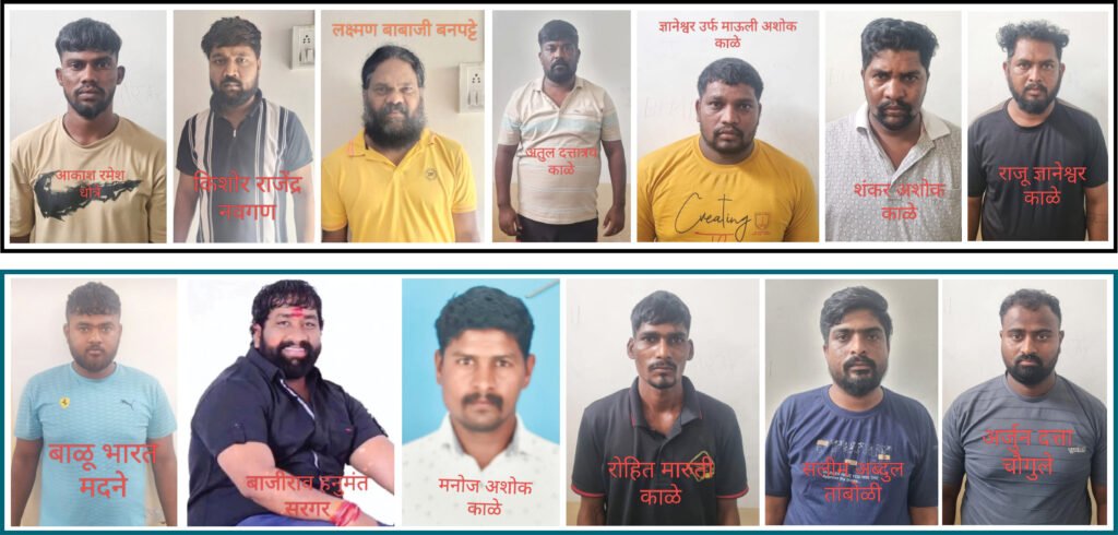 सदर कारवाईमध्ये मोक्का लावण्यात आलेल्या आरोपींमध्ये लक्ष्मण बाबाजी बंदपट्टे, बाजीराव हणंमत सरगर, शंकर अशोक काळे, एनेश्वर उर्फ माऊली अशोक काळे, राजु ज्ञानेश्वर काळे, अर्जुन दत्ता चौगुले, अतुल दत्तात्रय काळे, आकाश रमेश धोत्रे, बाळु भारत मदने, रोहित मारुती काळे, सलीम अब्दुल तांबोळी, मनोज अशोक काळे आणि किशोर राजेंद्र नवगन यांचा समावेश आहे.