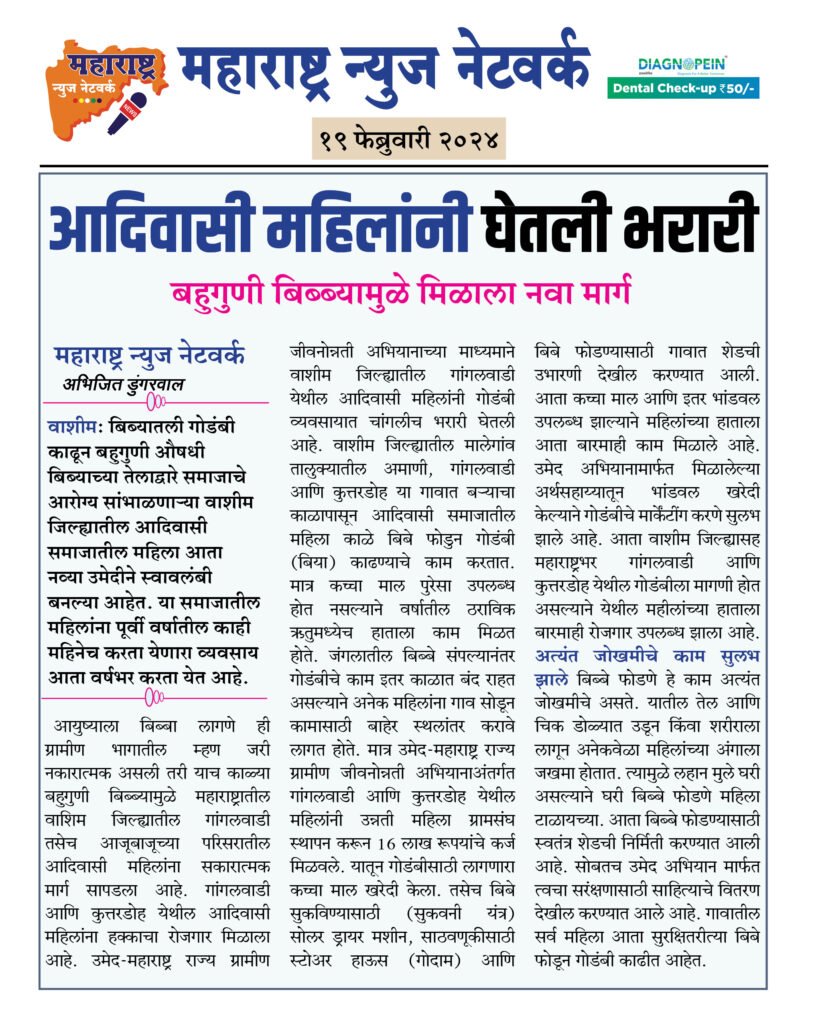 वाशीम: बिब्यातली गोडंबी काढून बहुगुणी औषधी बिब्याच्या तेलाद्वारे समाजाचे आरोग्य सांभाळणाऱ्या वाशीम जिल्ह्यातील आदिवासी समाजातील महिला आता नव्या उमेदीने स्वावलंबी बनल्या आहेत. या समाजातील महिलांना पूर्वी वर्षातील काही महिनेच करता येणारा व्यवसाय आता वर्षभर करता येत आहे.