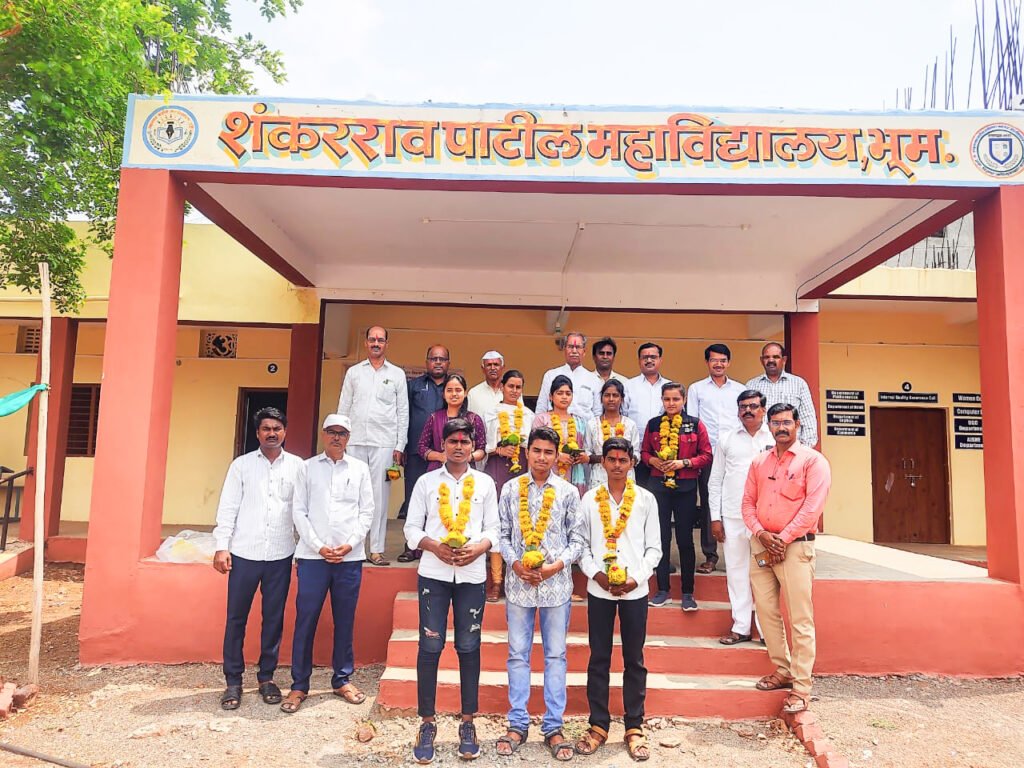 भुम : शंकरराव पाटील कनिष्ठ महाविद्यालय भूम येथे बारावी बोर्ड परीक्षातील गुणवंत विद्यार्थ्यांचा संस्था आणि कॉलेजच्या वतीने पालकासह सत्कार करण्यात आला.