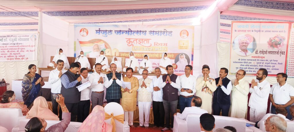 पुणे : राष्ट्रसंत आचार्य भगवंत 1008 प.पू. श्री आनंदऋषीजी म.सा. एवं आचार्य सम्राट प.पू. श्री डॉ. शिवमुनिजी म.सा. की आज्ञानुवर्तीनी आगमाचार्या गुरुमाँ डॉ. मंजुश्रीजी म.सा., ध्यानसिध्दा, Way of Life प्रणेता श्रमणी श्री अक्षयश्री ‘आखा’ जी म.सा. आदि के पावन सानिध्य में गुरुमाँ डॉ. मंजुश्रीजी म. सा. का 80 वा जन्मोत्सव और संसिद्धिजी म.सा. का 38 वा जन्मदिन समारोह बड़े उत्साह से संपन्न हुआ।