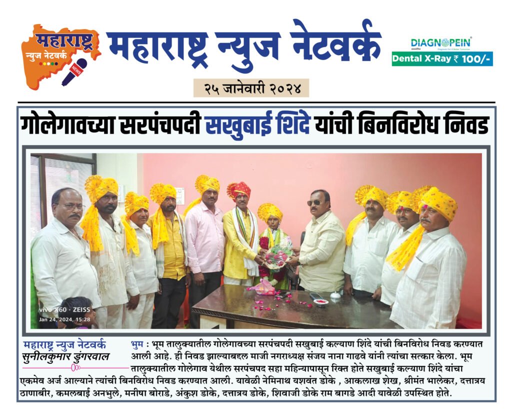 गोलेगावच्या सरपंचपदी सखुबाई शिंदे यांची बिनविरोध निवड