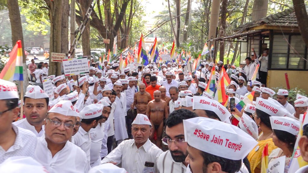 पुणे : ‘अहिंसा परमो धर्म की जय’, ‘धर्माचा व्यापार बंद करा’, ‘धर्म विकायची किंवा खरेदी करण्याची वस्तू नाही’, ‘शेठ हिराचंद नेमचंद जैन दिगंबर बोर्डिंगची जागा वाचवा’, ‘जैन मंदिर वाचवा’, ‘जब तक सूरज-चांद रहेगा, एचएनडी तेरा नाम रहेगा’ अशा घोषणांनी आज पुण्याचे वातावरण दुमदुमून गेले.