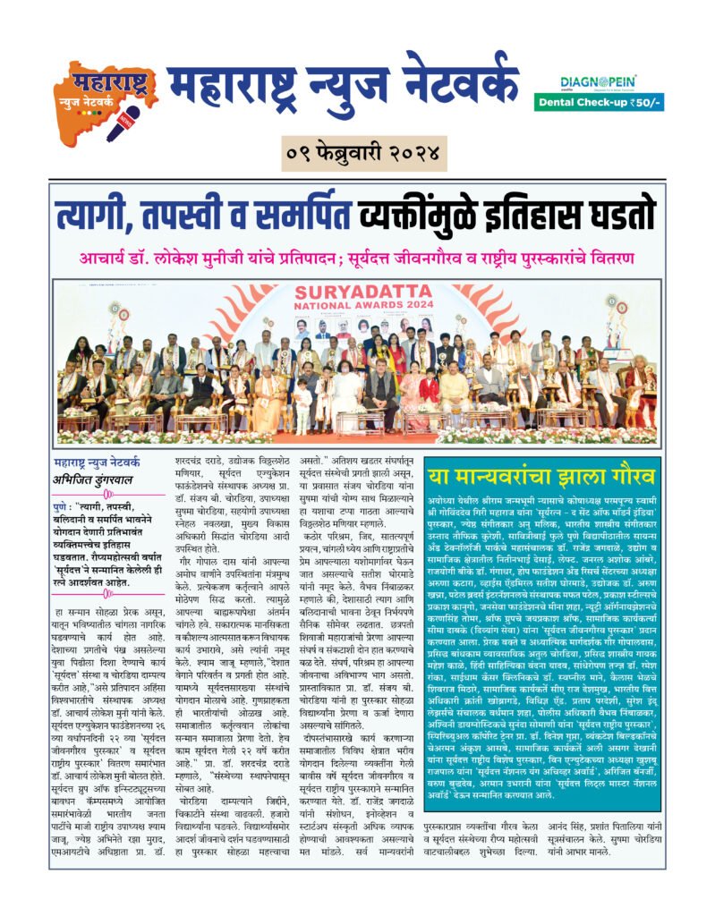आचार्य डॉ. लोकेश मुनीजी यांचे प्रतिपादन; सूर्यदत्त जीवनगौरव व राष्ट्रीय पुरस्कारांचे वितरण.