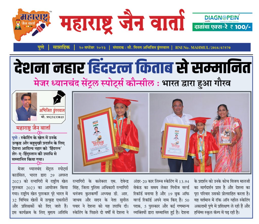← Back to Homepage देशना नहार हिंदरत्न किताब से सम्मानितमेजर ध्यानचंद सेंट्रल स्पोर्ट्स कौन्सील : भारत द्वारा हुआ गौरव maharashtrajainwarta • Maharashtra Jain Warta, MJW Daily News(Post Slider) • November 16, 2023 📥 Download News PDF