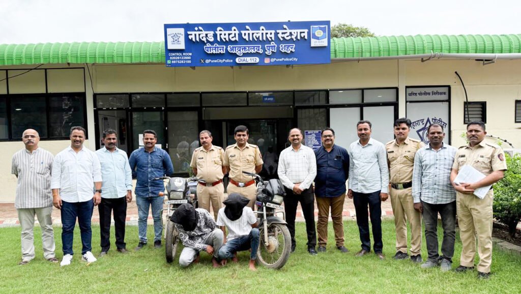 त्यानंतर पोलिसांनी सापळा लावून दोघांना अटक केली. चौकशीत त्यांनी दुचाकी चोरीची कबुली दिली. त्यांच्याकडून दोन दुचाकी जप्त करण्यात आल्या आहेत. ही कारवाई पोलीस उपायुक्त संभाजी कदम, सहाय्यक पोलीस आयुक्त अजय परमार यांच्या मार्गदर्शनाखाली नांदेड सिटी पोलीस ठाण्याचे वरिष्ठ पोलीस निरीक्षक अतुल भोस, पोलीस निरीक्षक (गुन्हे) गुरुदत्त मोरे, सहाय्यक पोलीस निरीक्षक राहुल यादव, पोलीस अंमलदार मोहन मिसाळ, शिवा क्षीरसागर, राजू वेगरे, उत्तम शिंदे, स्वप्नील मगर, निलेश कुलथे, भिमराज गागुर्डे, प्रतिक मोरे, अक्षय जाधव, संग्राम शिनगारे, सुदाम वावरे आणि सतिश खोत यांनी केली.