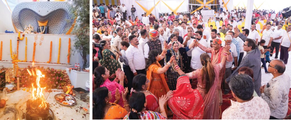 बैंड-बाजे और ढोली के साथ भगवान की दिव्य मंगल प्रवेश शोभायात्रा निकाली गई। प्राणप्रतिष्ठा का मुख्य समारोह रविवार (12 अप्रैल) को हुआ, जिसमें वेद मंत्रों और मंगलाचरण के साथ शास्त्रोक्त विधि-विधान के लिए सैकड़ों श्रद्धालु शामिल हुए। इससे पूर्व तीन दिन तक चले होम-हवन कार्यक्रम का संचालन बड़ीदा से आए 8 पंडितों ने किया।