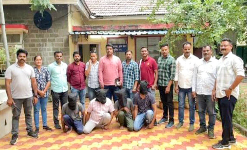 यावेळी १) पुष्पेंद्र अकबाल सिंग, (वय २७ वर्षे, रा. मुळगाव महानोरा, जि. उन्नव, उत्तरप्रदेश, सध्या रा. हरि आनंद सोसायटी, फ्लॅट ४१०.४ था मजला, सिध्दी चौक, अभिनव कॉलेज जवळ, नऱ्हे, पुणे, २) सुनिल पथ्थन सिंग, वय ४५ वर्षे, रा. मुळगाव महानोरा, जि. उन्नव, राज्य उत्तरप्रदेश, सध्या रा. हरिआनंद सोसायटी, फ्लॅट ४१०,४ था मजला, सिध्दी चौक, अभिनव कॉलेज जवळ, नऱ्हे, पुणे, ३) मुकेश कालुराम गेहलोत, वय २८ वर्षे, रा. मुळगाव मांडा, ता. मारवाड, जि. पाली, राज्य राजस्थान, सध्या रा. साई किरण अपार्टमेंट, हाऊस नं २, नवले ब्रिज जवळ, आंबेगाव, पुणे, ४) चंदन अजयपाल सिंग, वय ३२ वर्षे, रा. मुळगाव महानोरा, जि. उन्नव, राज्य उत्तरप्रदेश, सध्या रा. हरिआनंद सोसायटी, फ्लॅट ४१०, ४ था मजला, सिध्दी चौक, अभिनव कॉलेज जवळ, नन्हे, यांना अटक करण्यात आली आहे.