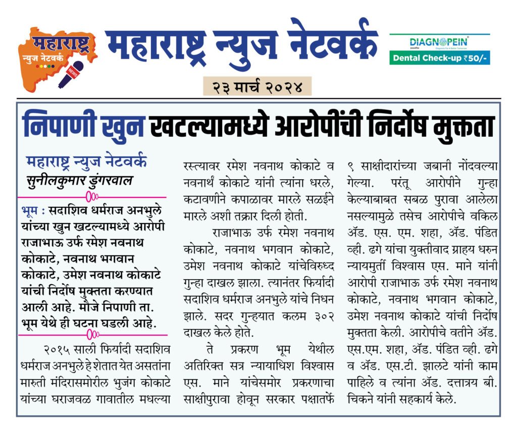 निपाणी खुन खटल्यामध्ये आरोपींची निर्दोष मुक्तता