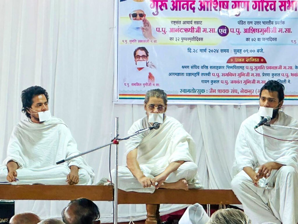 पारगाव : परमपूज्य राष्ट्रसंत आचार्य सम्राट आनंदऋषीजी म.सा. यांच्या 32 व्या पुण्यस्मृती दीनानिमित्त व प. पू. आशिषमुनिजी म.सा यांच्या 72 व्या जन्मदिवसानिमित्त प.पू. समकीतमुनिजी म.सा., प.पु. भवांतमुनीजी म.सा., प.पू. जयवंतमुनिजी म.सा. यांच्या सानिध्यात नेकनूर जि. बीड येथे विविध कार्यक्रमांचे आयोजन करण्यात आले होते. यावेळी लातूर, बीड, आंबेजोगाई, कळंब, पारगाव, नांदूर, चौसाळा यांच्यासह विविध संघांची उपस्थिती होती. या कार्यक्रमाचे आयोजन नेकनूर संघाचे अध्यक्ष पोपटलाल लूनावत, प्रदीप श्रीश्रीमाळ, विलास कोठारी यांनी केले होते. कार्यक्रमाचे सूत्रसंचालन स्वप्निल कोटेचा तर आभार डॉ. प्रशांत लूनावत यांनी मानले.