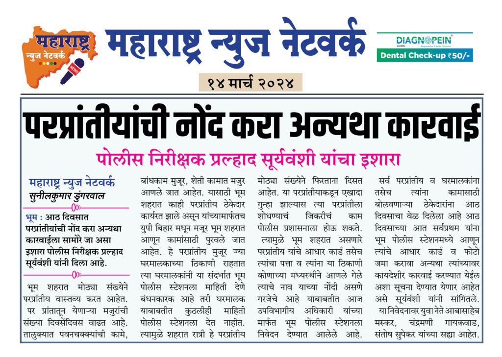 परप्रांतीयांची नोंद करा अन्यथा कारवाई
