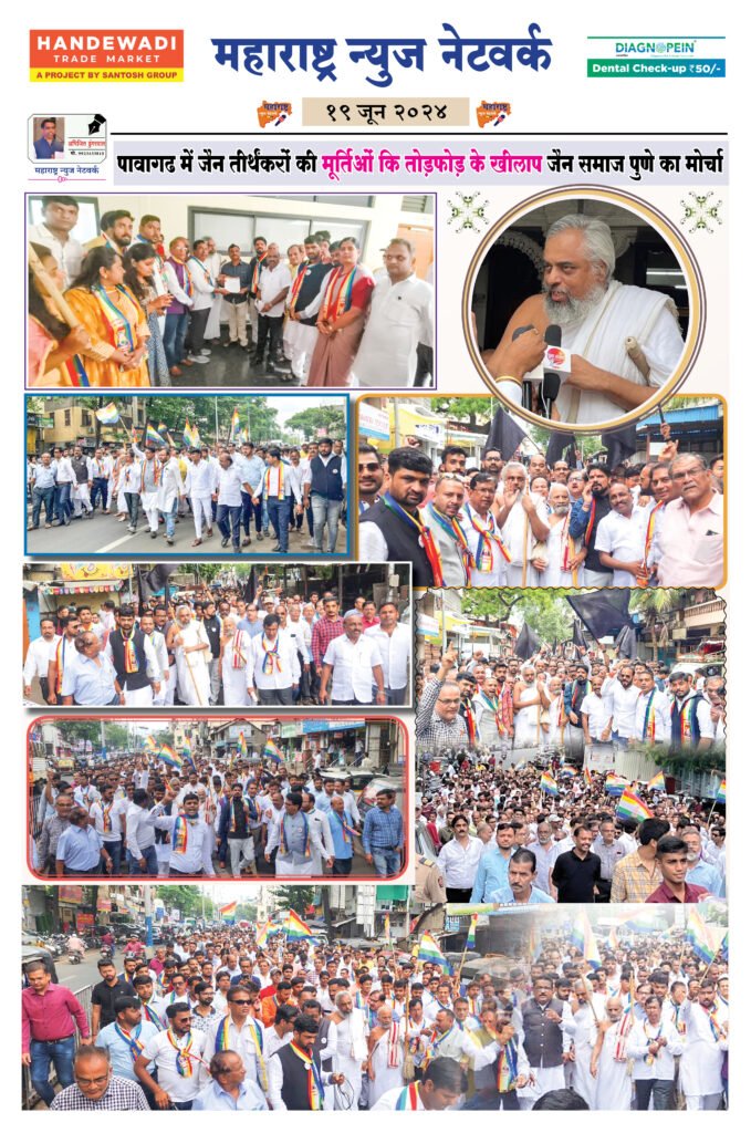 ← Back to Homepage पावागढ में जैन तीर्थंकरोंकी मूर्तिओंकि तोड़फोड़ के खीलाप जैन समाज पुणे का मोर्चा maharashtra jain warta • Maharashtra Jain Warta, MNN - Daily News(Post Slider), MNN - Social News, News, News Slider, Social • June 19, 2024 📥 Download News PDF Spread the love महाराष्ट्र जैन वार्ता Download