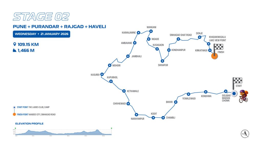 ही सायकल स्पर्धा कॅम्पमधून दुपारी साडेबारा वाजता सुरू होईल. कोंढव्यामार्गे बोपदेव घाटातून ही स्पर्धा चिंबळी, नारायणपूर, केतकावळे, कापूरहोळ, मोहरी, अंबवणे, वांगणी, शिवपूर, कोंढणपूर येथून सिंहगड घाट रोडने डोणजे येथे येईल. तेथून खडकवासला धरण, किरकटवाडी, नांदेड सिटी येथे ही स्पर्धा संपणार आहे.