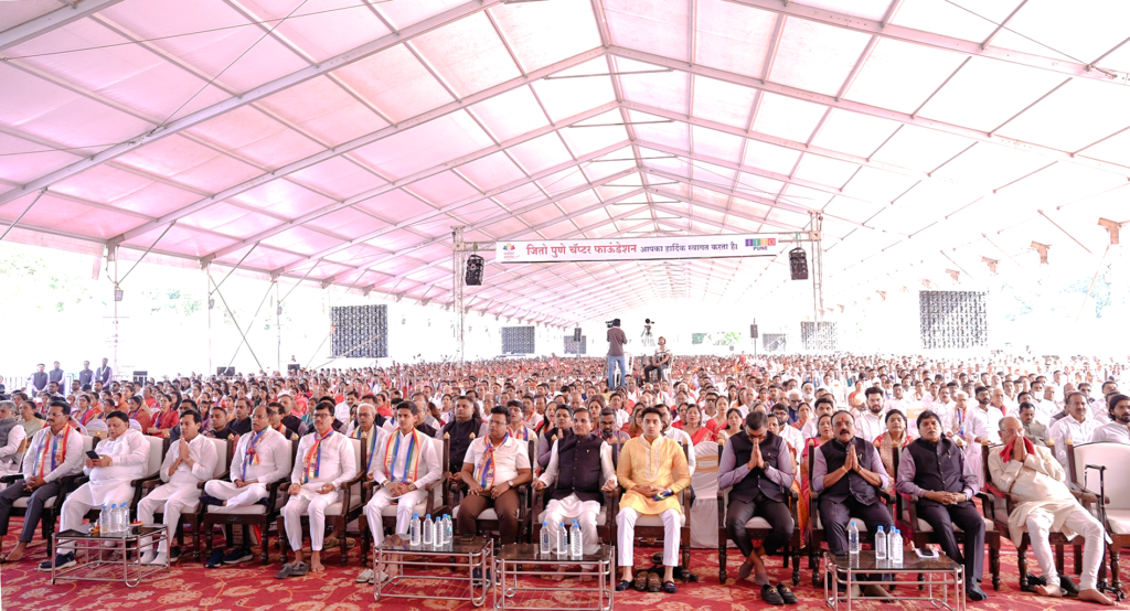 एस.पी. कॉलेज ग्राउंड पर 155 × 400 वर्गफुट का विशाल जर्मन हैंगर मंडप आकर्षण का केंद्र रहा। इस मंडप के कारण हजारों श्रद्धालुओं को धूप से संरक्षण मिला और पूरा कार्यक्रम अत्यंत सुव्यवस्थित रूप से संपन्न हुआ। इस कार्यक्रम में पुणे महानगरपालिका के आयुक्त नवल किशोर राम तथा दानशूर युवा उद्योगपति आदित्य धारिवाल की प्रमुख उपस्थिति रही।