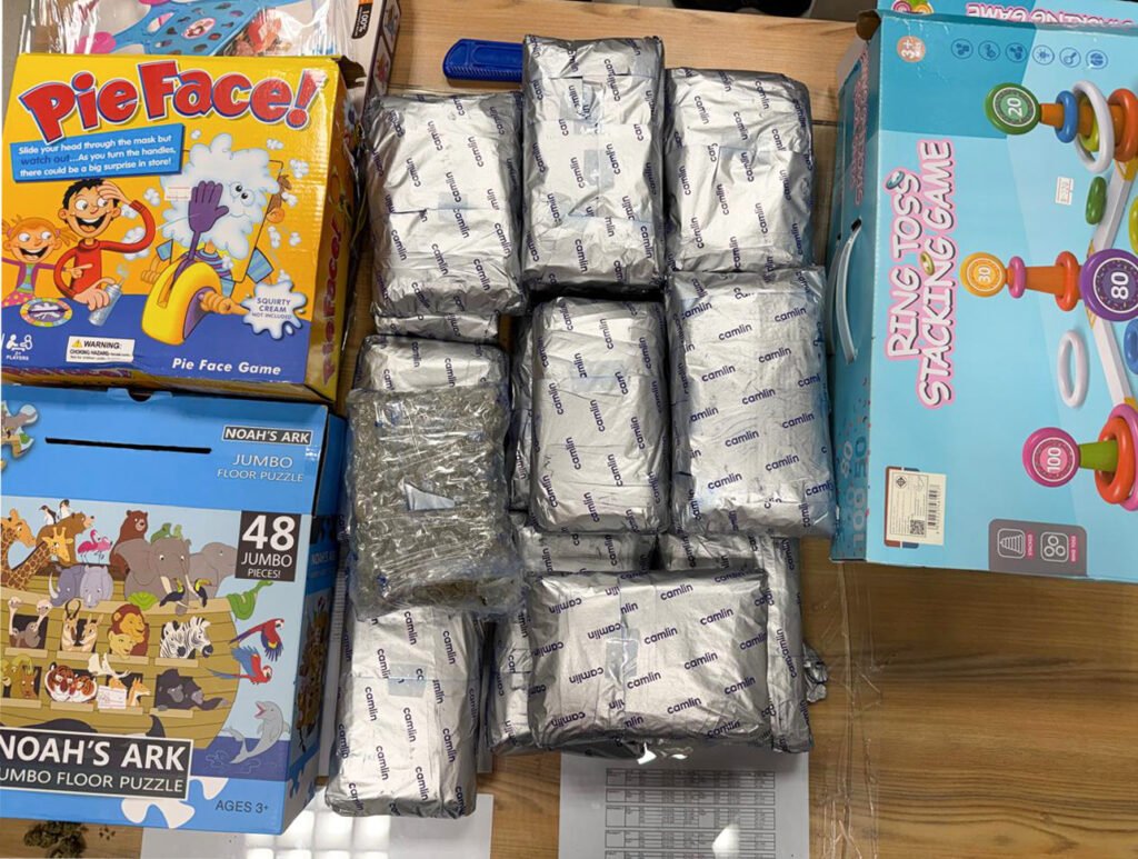 त्याच्याकडील खेळण्याच्या पाच बॉक्समधील पारदर्शक पाकिटांमध्ये कार्बन पेपरमध्ये गुंडाळलेला हायड्रोपोनिक गांजा आढळून आला. या अंमली पदार्थाचे वजन ५ किलो ४२९ ग्रॅम असून त्याची आंतरराष्ट्रीय बाजारात ५ कोटी ४२ लाख रुपये इतकी किंमत आहे.