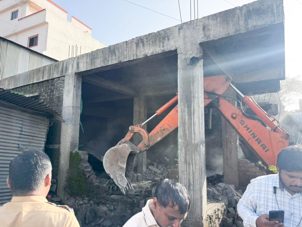 त्यामुळे या अनधिकृत घरावर महापालिकेच्या सहाय्याने जेसीबी लावून हे बांधकाम जमीनदोस्त करण्यात आले. तसेच शेजारील पत्र्याचे शेडही पाडण्यात आले.
