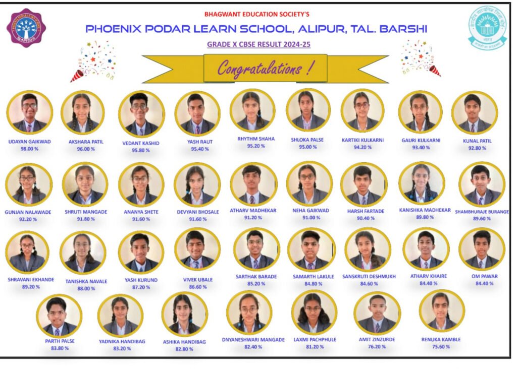 90% पेक्षा अधिक गुण मिळवलेले विद्यार्थी 16 , 80% ते 90% गुण मिळवलेले विद्यार्थी 16, 75% ते 80% गुण मिळवलेले विद्यार्थी – 2 या यशामागे शाळेचा विशेष ‘पोदार पॅटर्न’ अभ्यासक्रम आहे.