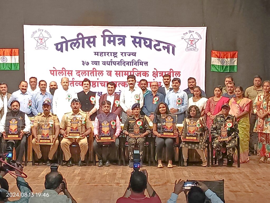 ← Back to Homepage पोलिस मित्र संघटनेचा ३७ वा वर्धापन दिन पुण्यात उत्साहात साजरा maharashtra jain warta • Maharashtra News Networks, MNN - Daily News(Post Slider), MNN - Social News, News, News Slider, Social • August 14, 2024 📥 Download News PDF Spread the love महाराष्ट्र न्यूज नेटवर्क पोलिस मित्र संघटना(महाराष्ट्र राज्य)चा ३७ वा वर्धापन दिन पुण्यात साजरा झाला. त्यानिमित्त पुण्यात आयोजित विशेष कार्यक्रमात पोलीस दलातील आणि सामाजिक क्षेत्रातील मान्यवरांचा सत्कार आयोजित करण्यात आला होता.
