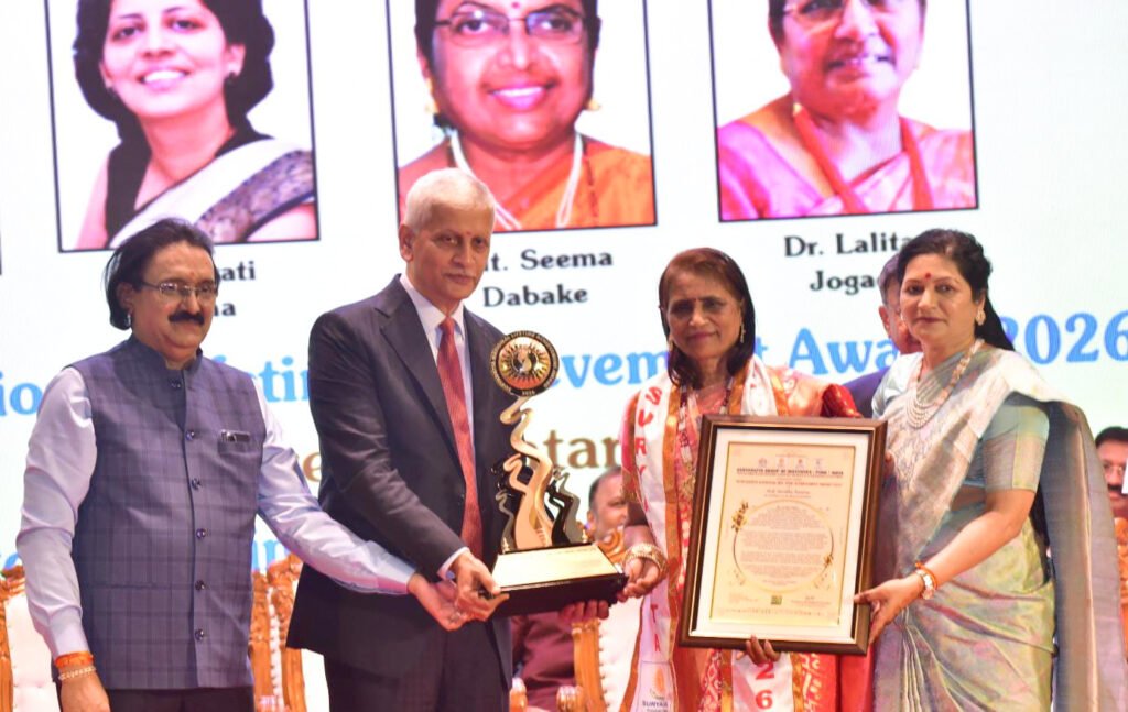 पुणे : साहित्य, शिक्षा एवं सामाजिक क्षेत्र में निरंतर और प्रभावशाली योगदान देने वाली साहित्यिका एवं शिक्षाविद् सुरेखा कटारिया को सूर्यदत्त ग्रुप ऑफ इंस्टिट्यूट द्वारा आयोजित राष्ट्रीय जीवन गौरव पुरस्कार समारोह में सम्मानित किया गया। यह पुरस्कार उन्हें संस्था के 28वें स्थापना दिवस के अवसर पर प्रदान किया गया।