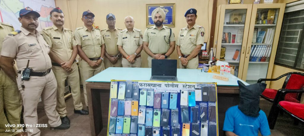 तेच्या हातामध्ये एक मोबाईल फोन होता त्या मोबाईल फोन बाबत त्याचेकडे विचारपुस केली असता त्याने त्याबाबत उडवाउडवीची उत्तरे दिल्याने त्याच्यावरील संशय वाढला. फुटपाथवरील त्याच्या बॅगेची तपासणी करता त्यामध्ये एक एच.पी. कंपनीचा लॅपटॉप, ४९ एन्ड्रॉईड मोबाईल फोन, ०५ साधे किपॅड असलेले विविध कंपन्यांचे फोन व त्याचे कडे असलेल्या एकुण ५५ मोबाईल फोन त्यांची एकुण किंमत ६,२०,०००/- रू. अंदाजे मिळून आले.