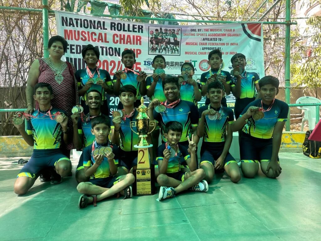 बार्शी : द म्युझिकल चेअर अँड स्केटिंग स्पोर्ट्स असोसिएशन गुजरात द्वारा आयोजित नॅशनल फेडरेशन रोलर म्युझिकल चेअर चॅम्पियनशिप – २०२४ मध्ये बार्शीतील मुलांनी मोठे यश संपादन केले. या स्पर्धेत मुलांनी सुवर्ण पदकासह पदकांची लयलूट केली.