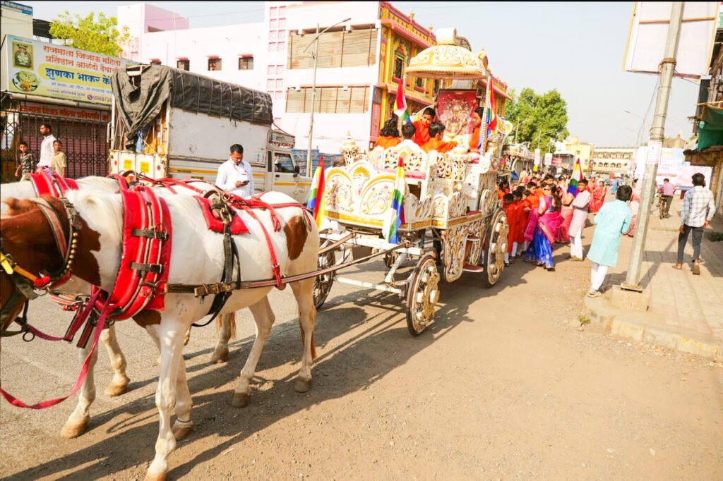 या निमित्ताने श्री वर्धमान जैन स्थानक येथून शोभायात्रेला सुरुवात होऊन फुलांनी सजवलेल्या रथात भगवान महावीरांची प्रतिमा विराजमान करण्यात आली. ही सवाद्य शोभायात्रा शहरातील प्रमुख मार्गांवरून मार्गक्रमण करत श्री जैन श्वेतांबर ऋषभदेव मंदिर येथे समाप्त झाली.