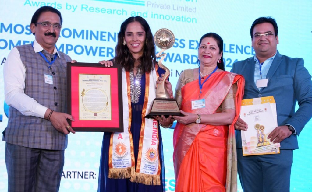 नवी दिल्ली येथे आयोजित सोहळ्यात सूर्यदत्त एज्युकेशन फाउंडेशन व सूर्यदत्त ग्लोबल बिझनेस फोरमचे संस्थापक अध्यक्ष प्रा. डॉ. संजय बी. चोरडिया, उपाध्यक्षा सुषमा चोरडिया व मुख्य कार्यपालन अधिकारी अक्षित कुशल यांच्या हस्ते सायना नेहवाल हिला सन्मानित करण्यात आले.