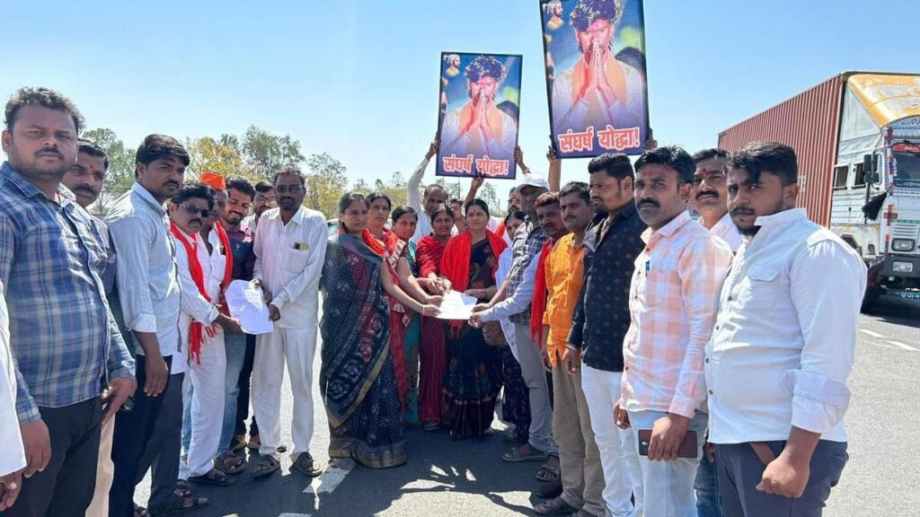 पारगाव : मनोज जरांगे पाटील यांच्या आदेशाने सगेसोयरे अध्यादेश लवकरात लवकर लागू करावा, मराठा आंदोलकांवरील गुन्हे त्वरित मागे घ्यावेत या प्रमुख मागण्यांसाठी आज सोलापूर धुळे रस्त्यावर पारगाव (मोटे) येथे रस्ता रोको आंदोलन करण्यात आले.