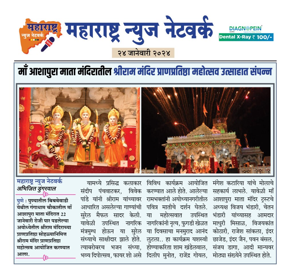माँ आशापुरा माता मंदिरातील श्रीराम मंदिर प्राणप्रतिष्ठा महोत्सव उत्साहात संपन्न
