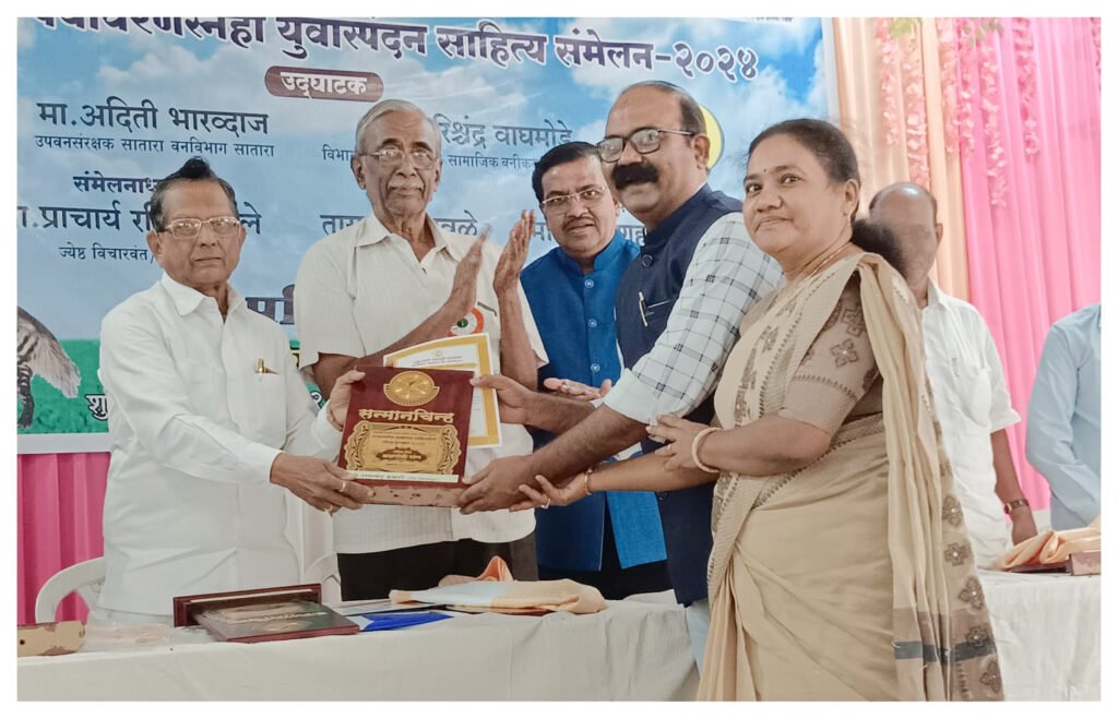 बार्शी : फलटण येथे संपन्न झालेल्या साहित्यप्रेमी सेवाभावी फाउंडेशन, फलटण यांच्यावतीने आयोजित 5 व्या राज्यस्तरीय पर्यावरणस्नेही युवा स्पंदन साहित्य संमेलनात रामचंद्र इकारे यांना ‘अक्षरांची रांग’ या ललित लेख संग्रहासाठी राज्यस्तरीय माणगंगा साहित्यप्रेमी गौरव पुरस्काराने सन्मानित करण्यात आले.