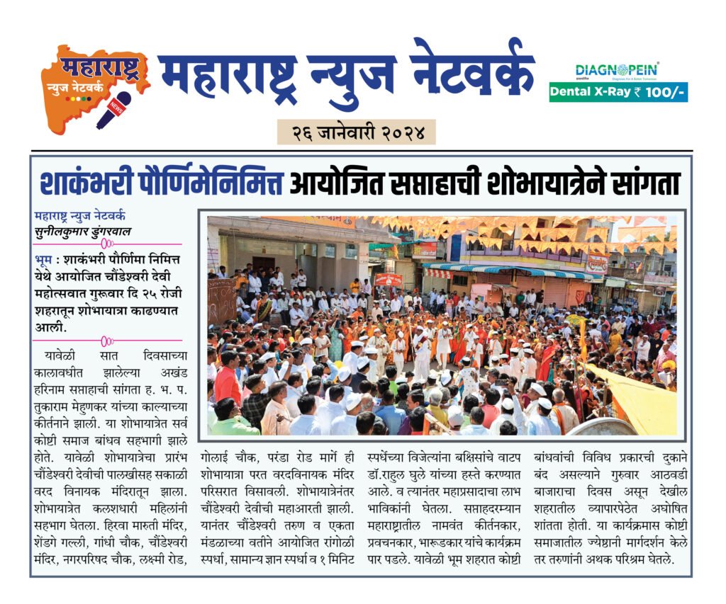 शाकंभरी पौर्णिमेनिमित्त आयोजित सप्ताहाची शोभायात्रेने सांगता