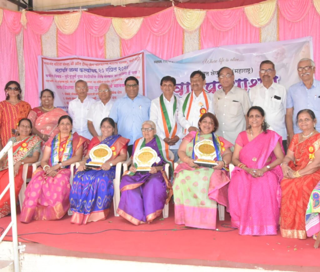 पुणे: स्वानंद महिला संस्था व श्री ऑल इंडिया जैन कॉन्फरन्सच्या वतीने महावीर कल्याणक दिनानिमित्ताने तळेगाव वानप्रस्थ आश्रमातील आजी आजोबाच्या सानिध्यात माता त्रिशला माई रमा पुरस्कारांचे उत्साहात वितरण करण्यात आले.