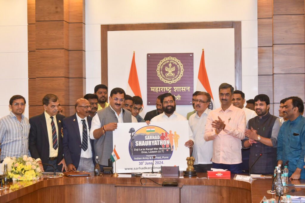 मुंबई : सरहद पुणे , भारतीय लष्कर यांच्या संयुक्त विद्यमाने आणि अर्हम संस्था पुणे यांच्या सहकार्याने सरहद शौर्याथाँन- २०२४ स्पर्धेचे आयोजन ३० जून २०२४ रोजी झोजिला वाँर मेमोरियल ते कारगिल वाँर मेमोरियल या दरम्यान करण्यात येणार आहे. स्पर्धेचा लोगो आणि संकेतस्थळाचे अनावरण मुख्यमंत्री एकनाथ शिंदे यांच्या हस्ते वर्षा शासकीय निवासस्थानी करण्यात आले.