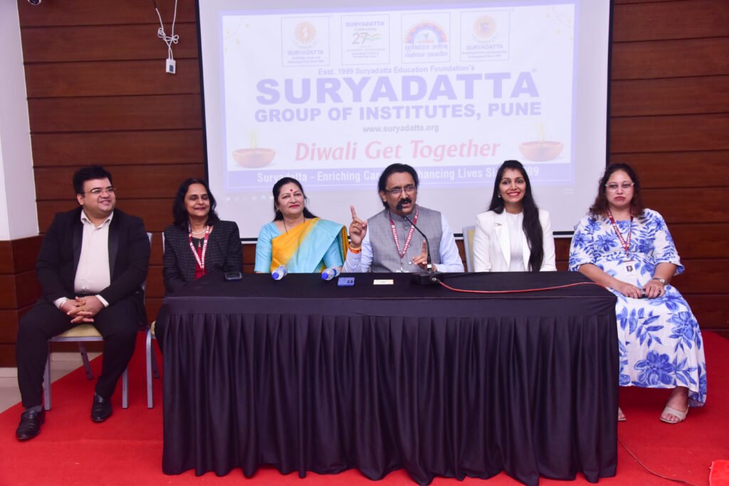 दिवाळीच्या निमित्ताने ‘सूर्यदत्त’च्या वतीने आयोजित पत्रकारांशी संवाद कार्यक्रमावेळी प्रा. डॉ. संजय बी. चोरडिया बोलत होते. पीवायसी हिंदू जिमखाना येथे झालेल्या कार्यक्रमावेळी ‘सूर्यदत्त’च्या उपाध्यक्षा व सचिव सुषमा संजय चोरडिया, सहयोगी उपाध्यक्षा स्नेहल नवलखा, मुख्य कार्यपालन अधिकारी अक्षित कुशल, स्वप्नाली कोगजे व्यवस्थापक (ऑपरेशन्स अँड रिलेशन्स), सूर्यदत्त कॉलेज ऑफ हॉस्पिटॅलिटी मॅनेजमेंट अँड ट्रॅव्हल टुरिझमच्या विभागप्रमुख रसिका गुमास्ते आदी उपस्थित होते.