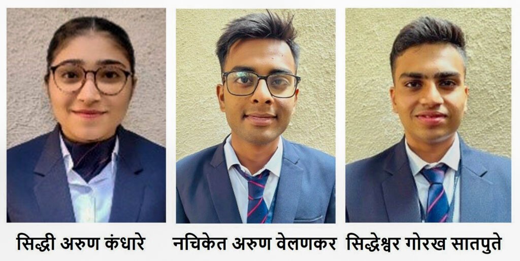 सिद्धी कंधारे (७७.३६ टक्के), नचिकेत वेलणकर (७४.७६ टक्के) आणि सिद्धेश्वर सातपुते (७४.२० टक्के) यांनी अनुक्रमे प्रथम, द्वितीय व तृतीय क्रमांक पटकावला.