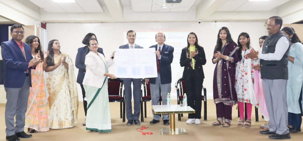भारतीय संविधान आणि लोकशाहीचे महत्त्व विद्यार्थ्यांना समजावून सांगण्यासाठी सूर्यदत्त एज्युकेशन फाउंडेशनच्या सूर्यदत्त विधी महाविद्यालयाने, बावधन कॅम्पसमधील बन्सीरत्न ऑडिटोरियममध्ये संविधान दिनाचा उत्सव आयोजित केला. या कार्यक्रमाचे आयोजन सूर्यदत्त एज्युकेशन फाउंडेशनचे संस्थापक व अध्यक्ष प्रा. डॉ. संजय बी चोरडिया यांच्या मार्गदर्शनाखाली करण्यात आले.