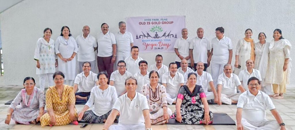 पुणे – हाइड पार्क सोसायटीतील ‘ओल्ड इज गोल्ड’ ग्रुपकडून जागतिक योग दिन मोठ्या उत्साहात साजरा करण्यात आला. दररोज सकाळी नियमित योग व प्राणायाम करणाऱ्या या ग्रुपच्या सुमारे ५० ज्येष्ठ सदस्यांनी आज विशेष योग सत्रात सहभाग घेतला.