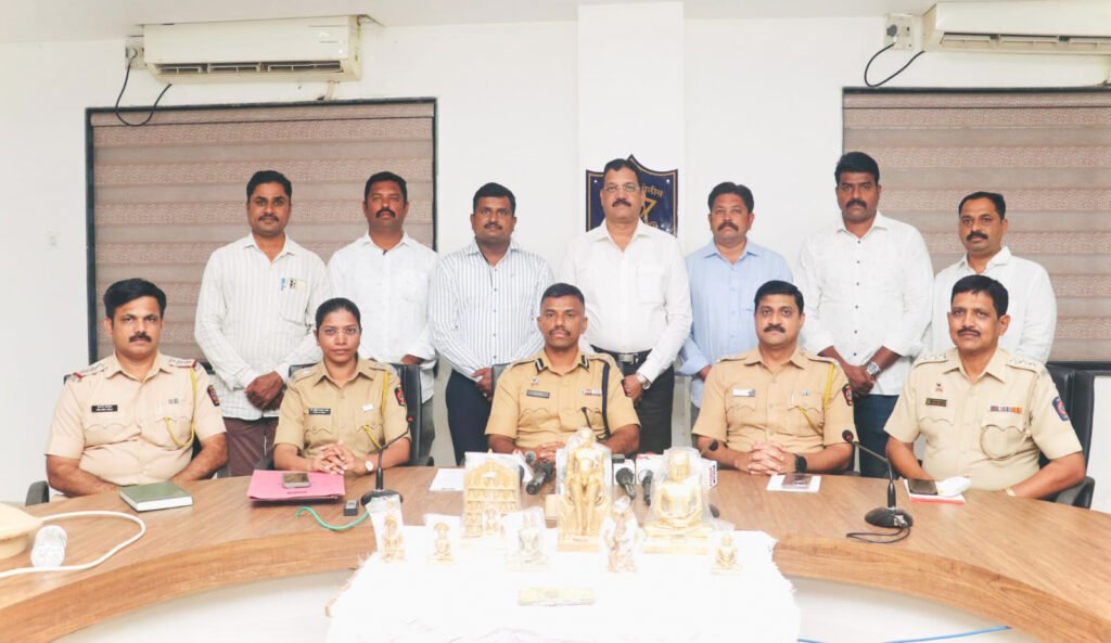 पोलिसांना गोपनीय माहिती मिळाल्यानंतर मोदी रेल्वे बोगदा परिसरात सापळा लावून आरोपींना अटक करण्यात आली. तपासादरम्यान आरोपींकडून पद्मावती देवी, बाहुबली, आदिनाथ, पार्श्वनाथ, अनंतनाथ, शांतीनाथ आणि २४ तिर्थंकरांच्या अशा एकूण ८ पंचधातूच्या मुर्ती तसेच रोख २००० रुपये असा १ लाख ६५ हजार रुपयांचा ऐवज जप्त करण्यात आला.