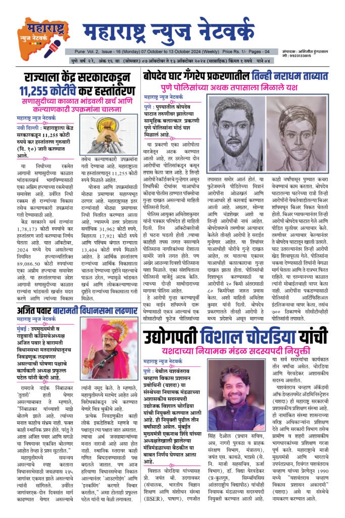 ← Back to Homepage 07 Oct To 13 Oct 2024 Weekly Issue maharashtra jain warta • Maharashtra News Networks, MNN - Weekly Issue • October 23, 2024 📥 Download News PDF Spread the love