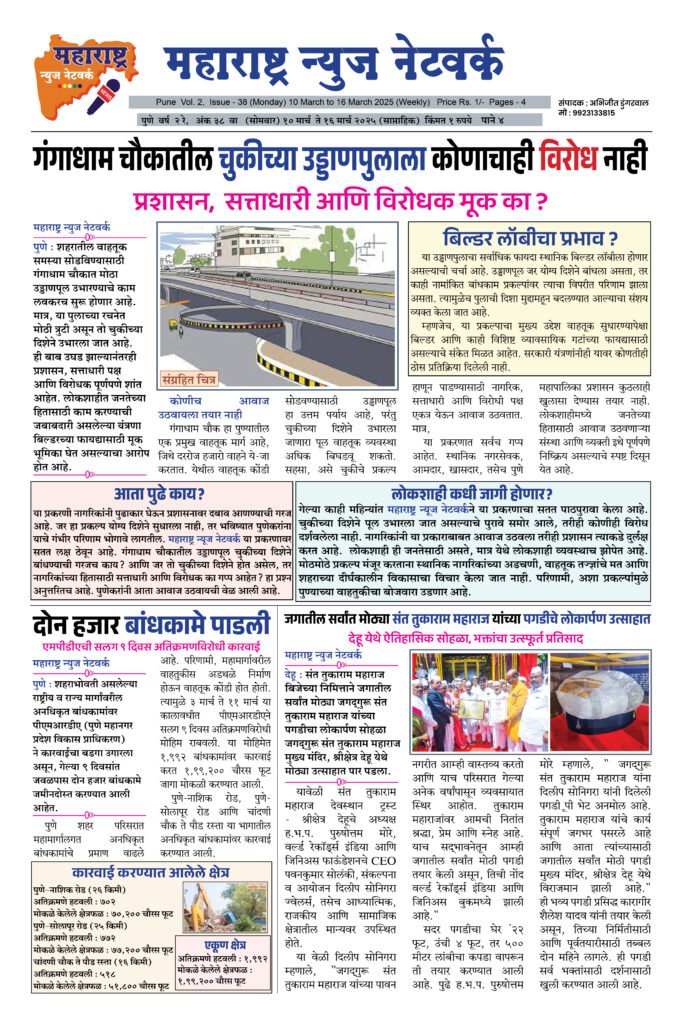 ← Back to Homepage 10 Mar To 16 Mar 2025 Weekly Issue maharashtra jain warta • Maharashtra News Networks, MNN - Weekly Issue • March 15, 2025 📥 Download News PDF Spread the love महाराष्ट्र न्यूज नेटवर्क
