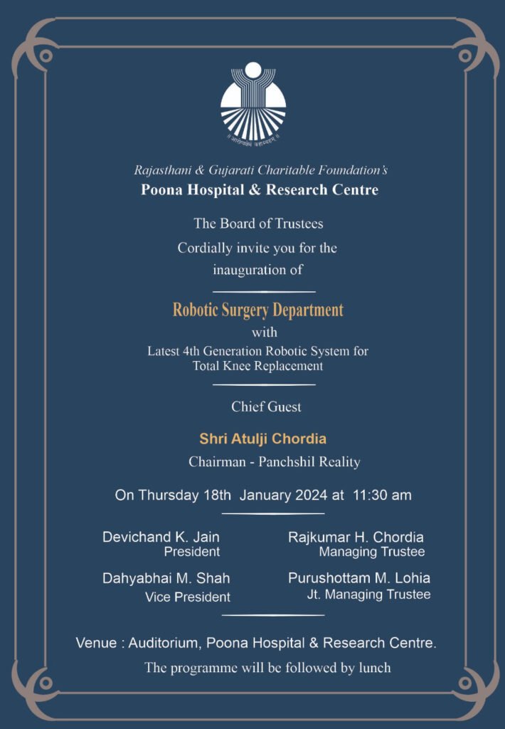 पुणे: पुना हॉस्पिटल आणि रिसर्च सेंटर तर्फे रोबोटिक सर्जरी डिपार्टमेंटचे उद्घाटन करण्यात येणार आहे.