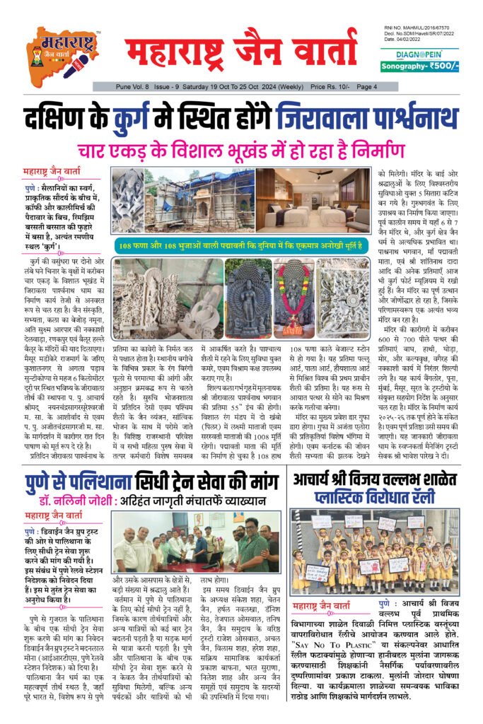← Back to Homepage 19 Oct To 25 Oct 2024 Weekly Issue maharashtra jain warta • Maharashtra Jain Warta, MJW - Social News, MJW Weekly News • October 28, 2024 📥 Download News PDF Spread the love