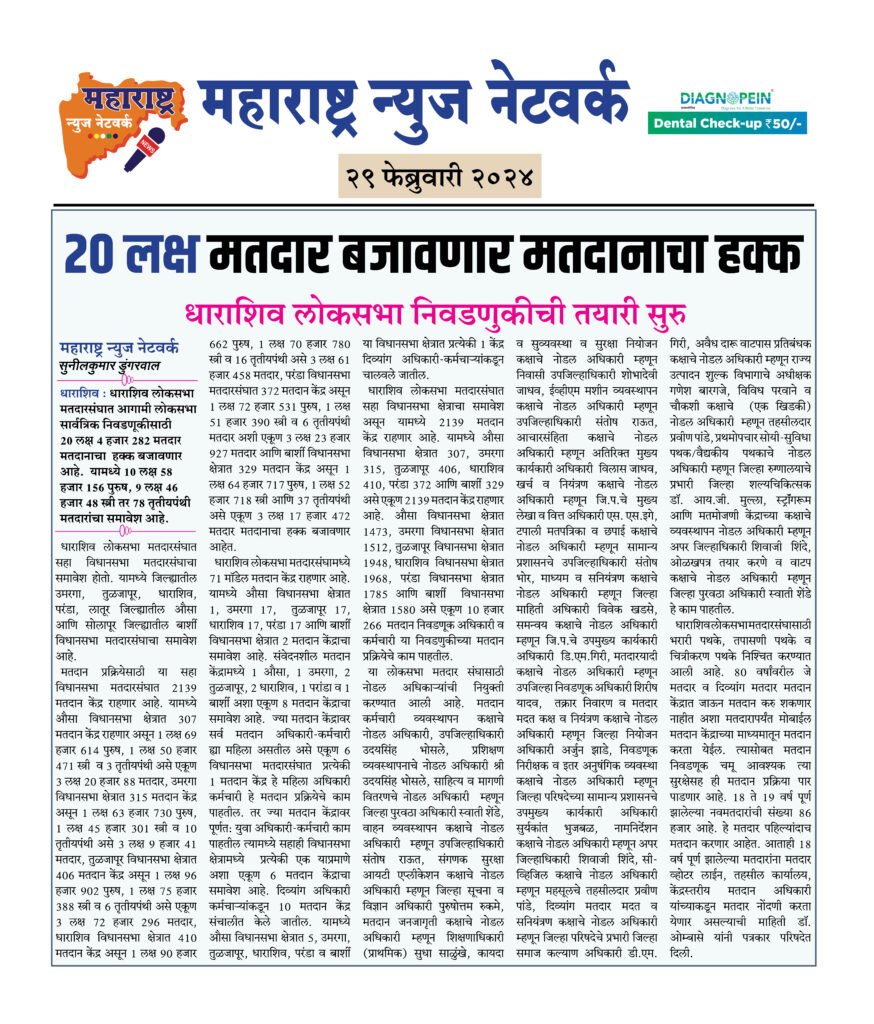 धाराशिव लोकसभा निवडणुकीची तयारी सुरु