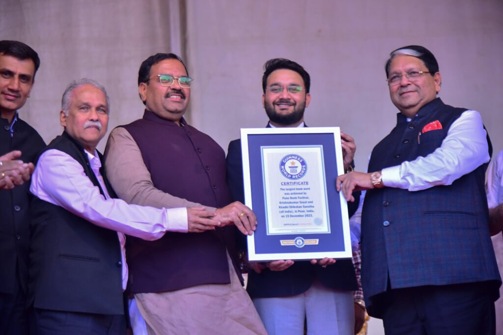पुणे पुस्तक महोत्सवाची तयारी अंतिम टप्प्यात असून, आज शनिवारपासून त्याची धडाक्यात सुरुवात होणार आहे. त्या अनुषंगाने शुक्रवारी फर्ग्युसन महाविद्यालयाच्या मैदानावर भारत हा शब्द सुमारे ७५०० हजार शब्दांनी लिहिण्यात आला. हा शब्द लिहिल्यानंतर, भारताने सौदी अरेबियाचा सात हजार १९१ पुस्तकांचा रेकॉर्ड मोडला. गिनेस बुक ऑफ रेकॉर्डचे अधिकारी स्वप्निल डांगगरिकर यांनी घोषण केल्यानंतर, विद्यार्थी, प्राध्यापकासह उपस्थित पुणेकरांनी जल्लोष साजरा केला.
