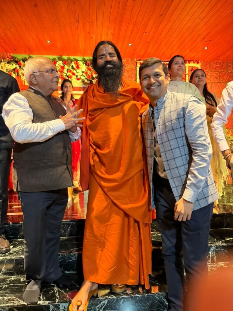 पुणे : पुण्यातील प्रसिद्ध उद्योगपती सुभाष हस्तीमल लोढा व युवा उद्योगपती विक्रम लोढा यांनी योग गुरु बाबा रामदेव यांची सदिच्छा भेट घेतली. यावेळी अनेक विषयावर योग गुरु व सुभाष लोढा यांची चर्चा झाली. सुभाष लोढा करीत असलेल्या “गोसेवेच्या” कार्याचे बाबा रामदेव यांनी कौतुक केले.
