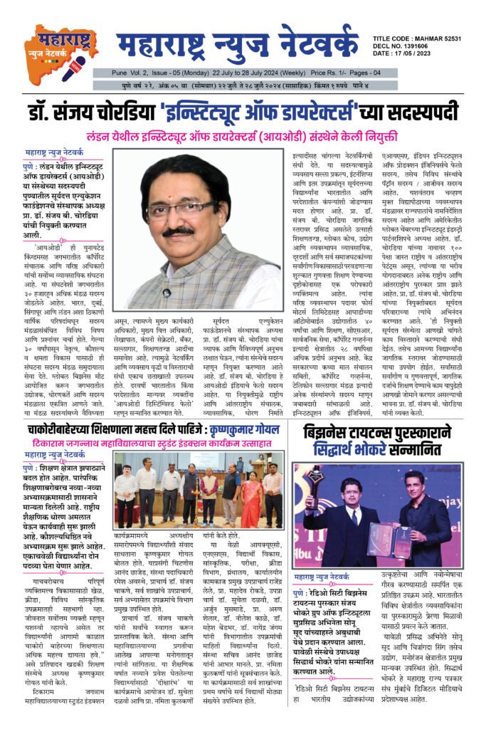 ← Back to Homepage 22 July To 28 July 2024 Weekly Issue maharashtra jain warta • Maharashtra News Networks, MNN - Weekly Issue • October 23, 2024 📥 Download News PDF Spread the love