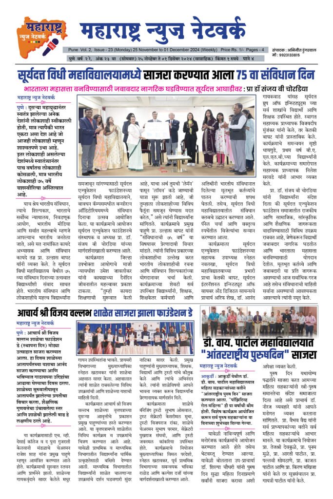 ← Back to Homepage 25 Nov to 01 Dec 2024 Weekly Issue maharashtra jain warta • Maharashtra News Networks, MNN - Weekly Issue • December 25, 2024 📥 Download News PDF Spread the love