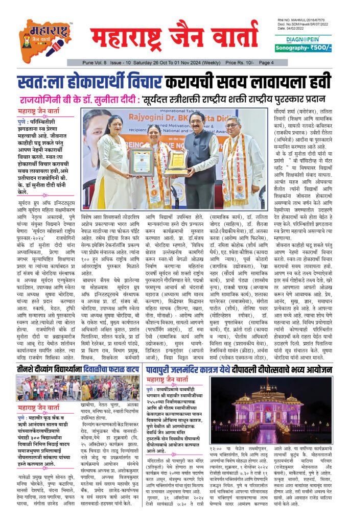 ← Back to Homepage 26 Oct To 01 Nov 2024 Weekly Issue maharashtra jain warta • Maharashtra Jain Warta, MJW Weekly News • November 5, 2024 📥 Download News PDF Spread the love