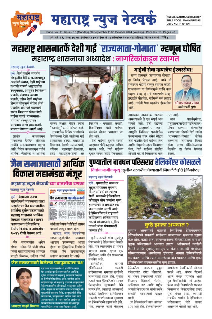 ← Back to Homepage 30 Sept To 06 Oct 2024 Weekly Issue maharashtra jain warta • Maharashtra News Networks, MNN - Weekly Issue • October 23, 2024 📥 Download News PDF Spread the love