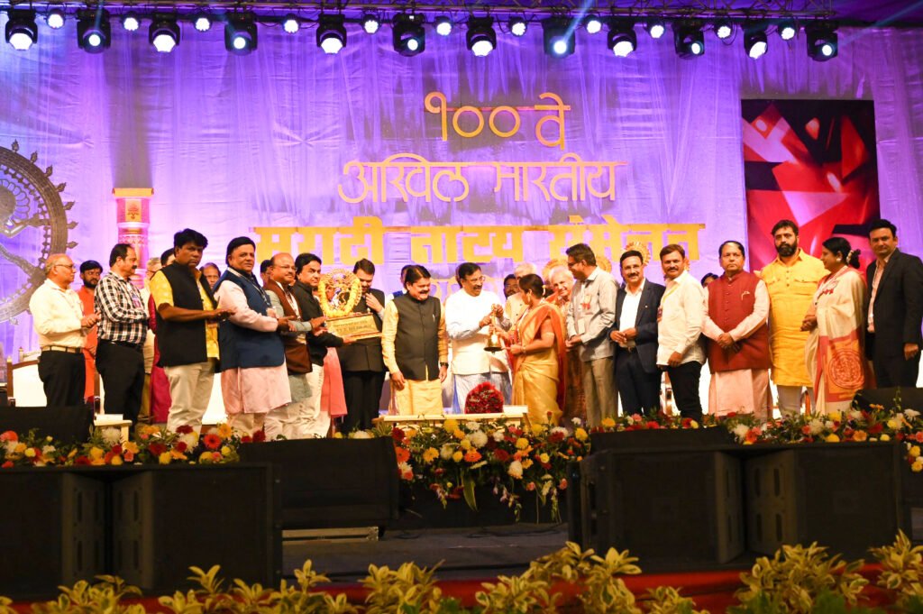 शंभराव्या अखिल भारतीय मराठी नाट्य संमेलनाचा हस्तांतर सोहळा रविवारी चिंचवड येथे पार पडला यावेळी उपमुख्यमंत्री देवेंद्र फडणवीस बोलत होते. यावेळी सांस्कृतिक मंत्री सुधीर मुनगंटीवार, प्रा. मिलिंद जोशी (कार्याध्यक्ष, महाराष्ट्र साहित्य परिषद), नाट्य संमेलनाचे आयोजक भाऊसाहेब भोईर, १०० व्या नाट्य संमेलनाचे अध्यक्ष डॉ. जब्बार पटेल, आमदार महेश लांडगे, आमदार उमा खापरे, नाट्य परिषदेचे अध्यक्ष प्रशांत दामले, पिंपरी चिंचवड महपालिकेचे आयुक्त शेखर सिंह, कैलास कदम, शंकर जगताप, सचिन भोसले, धम्मराज साळवे, तुषार कामटे, सचिन चिखले, निलेश तरस, चेतन बेंद्रे, राजेंद्र मुथा, स्वप्नील कांबळे, चंद्रकांत लोढे, राजेंद्र जैन, नाट्य परिषद पिंपरी चिंचवड शाखेचे कार्याध्यक्ष राजेशकुमार साकला, उपाध्यक्ष कृष्णकुमार गोयल, डॉ. डी. वाय. पाटील विद्यापीठाचे कुलपती डॉ. पी डी पाटील, धारिवाल ग्रुप ऑफ इंडस्ट्रीजचे प्रकाश धारिवाल आणि नाट्य परिषद नियमाक मंडळाचे पदाधिकारी आदि मान्यवर उपस्थित होते. या प्रसंगी पिंपरी – चिंचवड शहरातील २५ दिग्गजांचा सत्कार उपस्थित मान्यवरांच्या हस्ते करण्यात आला. तसेच यावेळी सोलापूर नाट्य परिषदेकडे मान्यवरांच्या हस्ते नटराज आणि घंटा सुपूर्द करण्यात आली.
